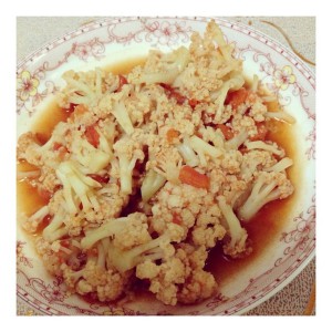 油锅,倒入番茄酱,醋,白砂糖,酱油等,加水,中火放西红柿炒出红汤然后小火直接到入菜花,翻炒五分钟出锅。