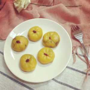 手上沾点油,最后是无味的油。糯米粉掐一小块,在手上按扁。