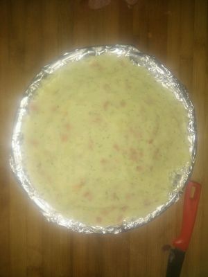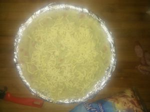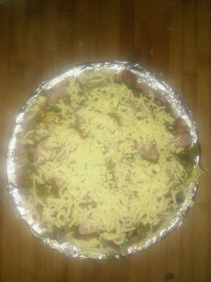 把炒熟的蔬菜倒上去,在撒一层芝士。