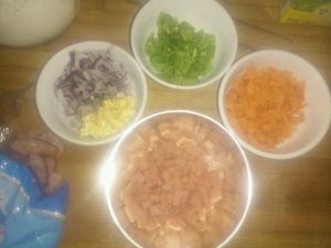压成泥,撒点盐,黑胡椒,火腿(只要可以变成泥就行了(ง •̀_•́)ง)