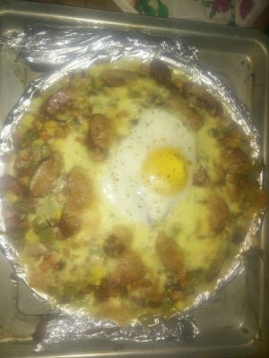 烤箱预热220度,烤5~10分钟。(突然很想吃鸡蛋所以就打了一个鸡蛋在上面)