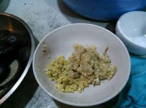 把姜和蒜头洗干净,剁碎粒粒成姜蓉蒜蓉,留起备用。