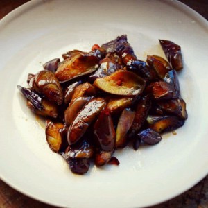 加点盐酱油,一点点的锅边醋,一点点糖,翻炒翻炒~边炒边压,茄子真是不吸油,油还在锅上(ฅ>ω<*ฅ)关火,盖上锅盖焖一会儿