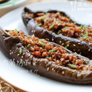 烤箱提前预热200度,将铺好肉酱的茄子连容器一起放入烤箱烤15-18分钟。