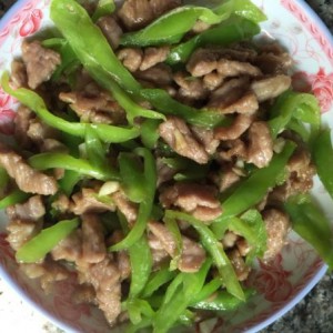肉切成丝用盐巴,味精,地瓜粉,生抽,一起搅拌腌制。青椒也切丝备用