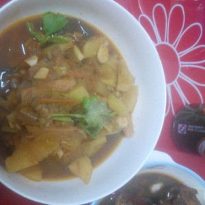 加入汤,葱姜蒜一起炖30分钟等汁没