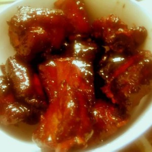 根据个人喜好,可以放入蒜末,加水,刚刚淹没排骨即可……大火烧开,小火10分钟,开锅,大火收汁就好了