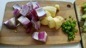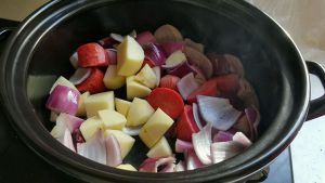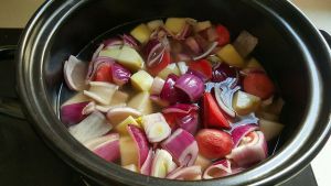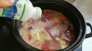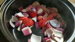 锅内放油烧热,加入洋葱和胡萝卜翻炒一下。