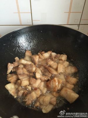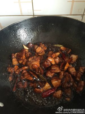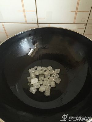 冰糖化成淡黄色时倒入肉 炒的时间长一点 这样肉不腻 但是这样有一个弊端就是一堆肉会变的特别少 但绝对感觉不出来肥肉的feel