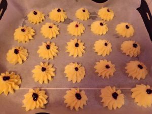 黄油软化加糖粉和白糖搅拌、然后分三次加入鸡蛋液搅拌均匀,然后筛入低粉搅拌均匀装入裱花袋