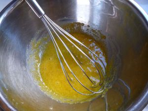 制作卡仕达酱,混合蛋黄和糖搅打至细砂糖基本融化。