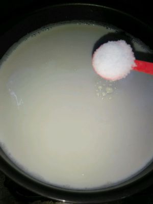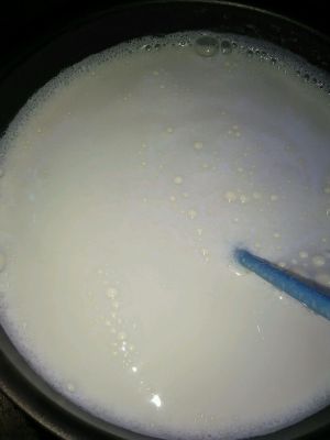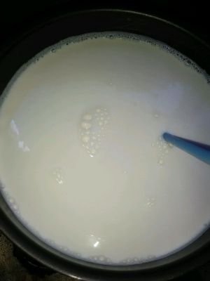 牛奶倒入锅小火煮~