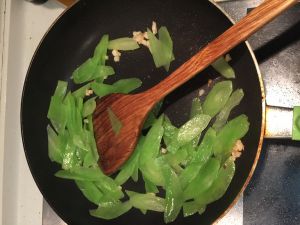 翻炒一分钟后加一小勺盐 几滴香油 出锅装盘