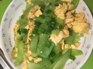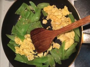 鸡蛋打散 加半个蛋壳的清水 一小勺盐 锅里放油 下蛋液 炒散后盛起备用