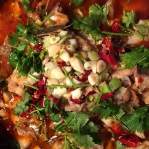 最后把鱼盛在刚才放豆芽的盆里、加入葱姜蒜 把油烧开 泼在上面最后放点香菜就没吃了