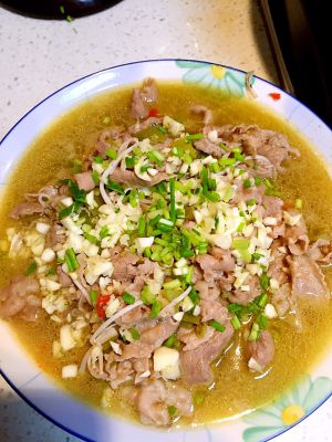 连肉带汤一起倒出来撒蒜末,淋少许热油,撒香葱,开吃