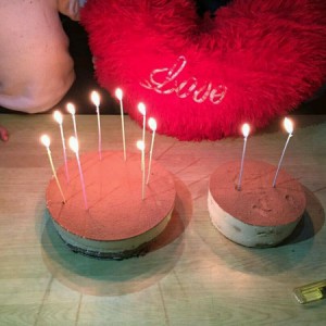 烤好的可可蛋糕切两片,倒入芝士糊在放蛋糕,面上刷咖啡酒再到芝士糊在放蛋糕,面上晃匀
