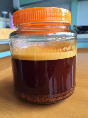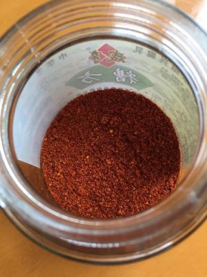 起锅炼油,冒烟停火,晾至8分热,倒入装辣椒粉的器皿,用筷子搅拌一下,密封静置。