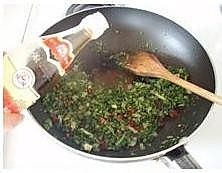 往锅壁上淋入香醋,加鸡精、香油调味即可。