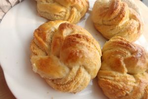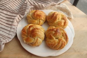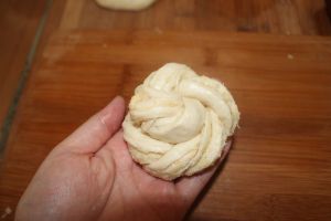 做熟练以后这种整形方法很快,而且形状也比把椰蓉馅整个包进去,擀开再拉几刀再卷起来那种要好看的多。