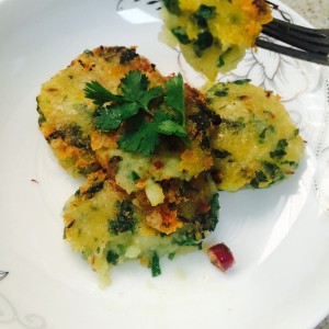 将香菜,辣椒,孜然加入土豆泥中,再调入适量盐,黑胡椒粉,香油,将所有材料搅拌均匀