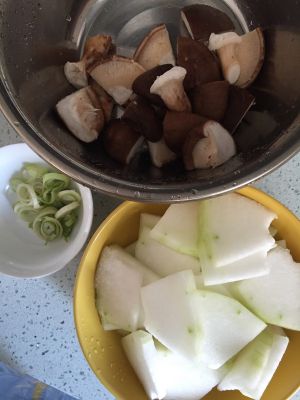 冬瓜切片,这样好熟又入味,鲜香菇切成平均4块