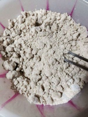 用两只手搓面粉,搓的有点像豆渣,既不黏在一起,又湿漉漉的,(没有手拍照了)