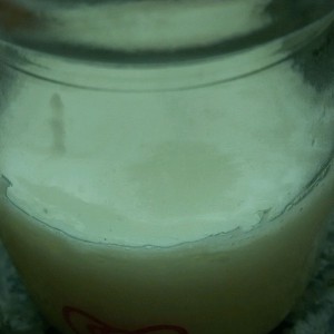 取出,戳边缘放奶,白白的是奶皮,由于我技术不佳,所以奶皮只有一点。