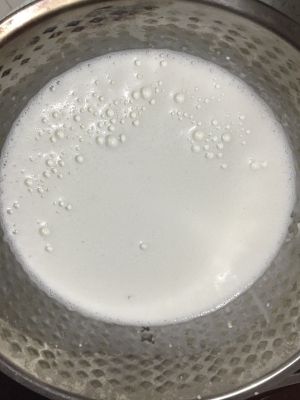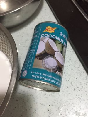 椰浆倒入盆,同时也把剩下马蹄粉倒入盆里,搅拌均匀