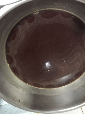 接下来就准备锅,放入另一个盆,待水煮开后,倒红糖水,然后盖上锅盖,蒸熟后再放入椰浆粉,一定要蒸熟才好放哦,要不分层就不好看了。就这样,一层红,一层白。