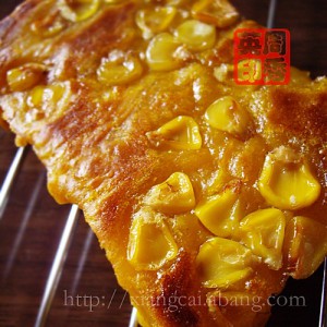 最后在上面再撒一层玉米粒,送进烤箱200度烤50分钟。(请看小帖士备注2)