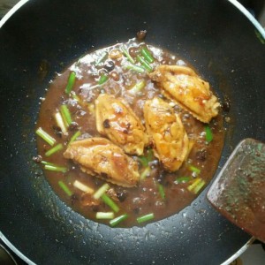 把酱料倒入剪好的鸡翅锅中,中火焖至收汁。