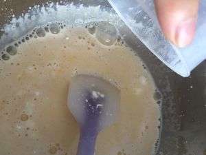 倒入冷藏好的牛奶浆汁、搅拌均匀