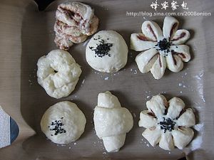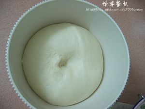 松弛后的面团按自己喜欢的整形。放到烤箱里进行最后发酵30~40分钟,烤盘下放一碗热水。