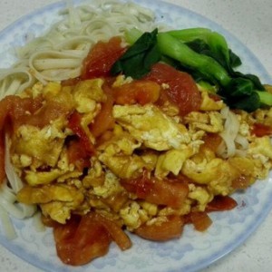 西红柿切成小块,炒一下之后加入鸡蛋。加半勺盐和糖。出锅。