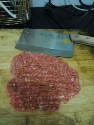肉从冰箱拿出解冻,剁成肉饼,加入少许淀粉可以更加嫩,生抽可以提鲜