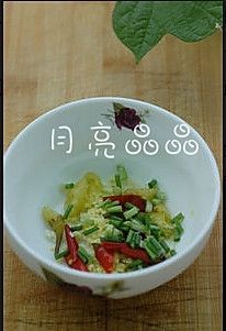 姜蒜剁细末,葱切葱花,泡椒切碎,全部放在一个小碗中.
