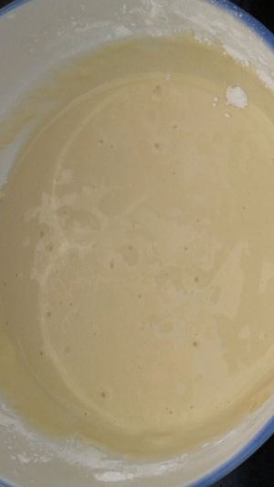 另备只碗放入面粉加入鸡蛋边加水边搅拌,搅拌成能挂住为准