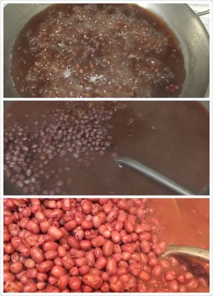 大约50分钟后,水基本干了,豆子也煮好了,每个红小豆都变成一包沙了