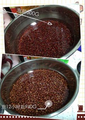 提前12小时泡豆子,500g红豆泡完称了下大约940g,吸了一倍的水