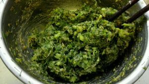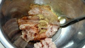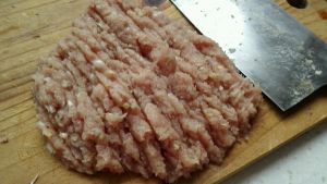 肉馅我是自己买的瘦肉剁的,因为我们家都不爱吃肥肉,可以用现成肉馅代替,把姜和葱一起剁进去。