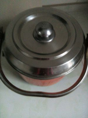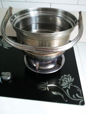锅掂下来放入外罩锅里,你会听到锅里还在沸腾翻煮呢!