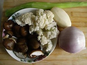 食材:莴苣、土豆、洋葱、花菜、鲜香菇。