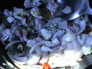 再倒入牛蛙(俺是偷懒,其实先要把牛蛙煸好盛出)