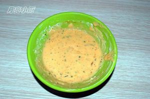 放鸡精,胡椒粉,熟芝麻,香葱碎调成稠糊后静置一会儿,