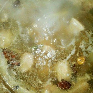 把排骨 配料 放在事先准备好的凉白开里面 开始炖一个小时左右(我用的是炉子炖的)