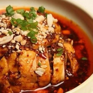 将酱油盐糖醋混合两勺红油搅拌均匀后淋在鸡肉即可。