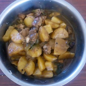 放入水和料酒 大约30分钟 开锅后小火 下面开始准备土豆