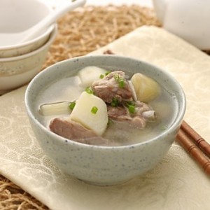 放入姜片、小排、山药,大火煮开后,转小火炖约90分钟
