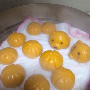 将做好的南瓜饼放入蒸锅,如果没有蒸布垫底的话,最好在蒸屉上涂抹点食用油,防止粘锅。蒸大概二十分钟就可以关火,搞定!